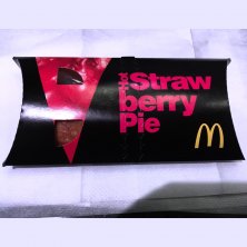 ファストフードのチェーン店、マクドナルドの期間限定メニュー、ホットストロベリーパイ。 サクサクのパイ生地の中に、果肉の入ったストロベリーフィングをたっぷりと詰めた物です。 本日の仕事帰りに、空港で松戸駅行きのリムジンバスを待っている時間を利用して食べました。 マクドナルドのホームページはこちら。 http://www.mcdonalds.co.jp