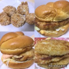 ファストフードのチェーン店、マクドナルドで買ったチキンとハンバーガー類。 左上→ひとくちチキンタツタ。 右上→チキンタツタ。 左下→チキンタツタ めんたいチーズ。 右下→ごはんチキンタツタ。 マクドナルドのホームページはこちら。 https://www.mcdonalds.co.jp
