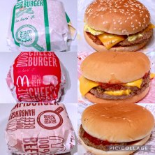 ファストフードのチェーン店、マクドナルドで以下のレギュラーメニューのハンバーガー類を其々買ってみた。 中身は、 ・ベーコンレタスバーガー(上)。 ・ダブルチーズバーガー(中)。 ・ハンバーガー(下)。 です。 マクドナルドのホームページはこちら。 https://www.mcdonalds.co.jp