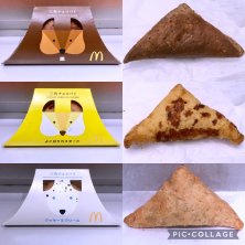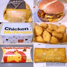 ファストフードのチェーン店、マクドナルドの過去の期間限定メニューのパイ類。仕事帰りのおやつ用に1個ずつ買ってコラージュにして纏めました。 中身は、 ・上段→三角チョコパイ 黒。 ・中段→三角チョコパイ よくばりカスタード。 ・下段→三角チョコパイ クッキー&クリーム。 です。 マクドナルドのホームページはこちら。 https://www.mcdonalds.co.jp