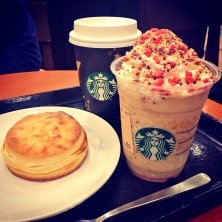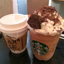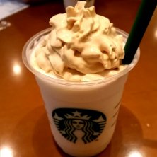 ちょっと飲んだ後ですが… 1G C/x.aw/x.cc/x.cr/F(1ショット・キャラメルシロップ・チョコチップ・キャラメルソース追加、ホイップ多め→アーモンドフラペチーノ) ほろ苦で美味しい♡