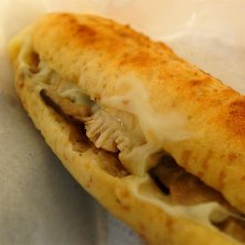 フィローネ きのこ&モッツァレラ(ポーク) シャキシャキッとくわいが歯応えのアクセントに、更にピリッとしたマスタードがホワイトソースやチーズを取りまとめてくれています。