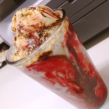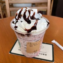 豆乳に変更のストロベリーチーズケーキフラペチーノ、カップソース多め、チョコチップ・チョコレートソース追加♡