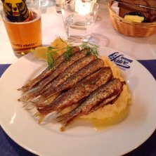 ヘルシンキの船乗り達が集った港のレストラン「サルヴェ」の名物料理、バルト鰊の唐揚げ!!ビールに最高です〜‼︎(≧∇≦)