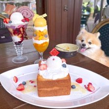 ラテちゃんとDog Cafe🐶🎶 ラテちゃんごはんもりもり食べてた😋 今日はチートデー🎶 ハニートースト、ペニーレインパフェ、 あともう一つは…マンゴーのパフェなんだけど🥭 メニュー名忘れた😅 おいしかったし、ラテちゃんと一緒にカフェ行けて嬉しかった😃💕 隣のペニーレインでパンも買って帰りました🍞🥐🥯🥖🥨どれもおいしそうで、全部ほしくなっちゃったー🎶 明日は早朝4時に出発して、大阪へ戻ります🚐✨