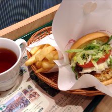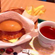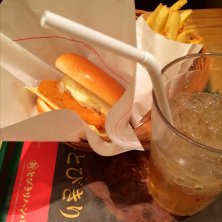 晩ごはん☆ロースカツ菜摘(230kcal)・紅茶 美容室の予約まで時間つぶしがてら夕飯&勉強のため、久々のモス! 昼もサンドイッチだし、どうかなぁと思ったら、そういえばこんなメニュー! バンズの代わりにレタスたっぷり! 初めてオーダーしたけど、よく出来てる!畑や野菜の鮮度までこだわるモスだから成せるメニューですね。ごちそうさま♪ Wi-Fi・プラグがあるし、空いていて居心地よし。いい店舗見つけた♪ さて、通信教育は期限まで余裕あるものの、旅行前に終わらせたい気分。夏休みの宿題みたい〜☆
