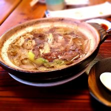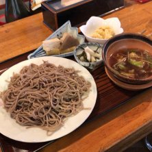 店主がまたぎ⁉︎の店でつけそば定食(くま)1200円を150円追加の大盛りでオーダー。そばの実を混ぜ込んだという蕎麦にアツアツの熊の汁でいただく逸品。やっぱり熊肉にはクセがあるけど蕎麦がベラボーに旨し(⋆ʾ ˙̫̮ ʿ⋆)