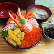 小樽なう。 と、妹と娘。 ああ、食べたい〜♡( ᵕ̤ૢᴗᵕ̤ૢ )♡ こんだけ盛って2000万円(笑)