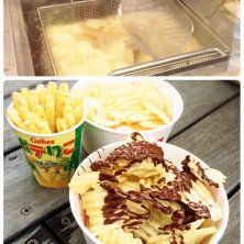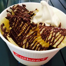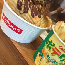 モザイク神戸にopenしたCalbee+(*^^)v ずっと気になってたけど、なかなか行けず念願の(›´ω`‹ ) ロイズのチョコ味+ソフトクリームに♡ 揚げたてのポテチにチョコはなんとも言えない...♡ ソフトクリームにディップしたらヤバイ♡ 今日フライドポテト食べたのに、またじゃが芋w Today is POTATO DAY~(*´nn`*)