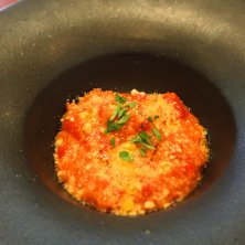 キャベツのパンナコッタとリボリータのキャベツソース ☆上に載ってるキャベツの葉はドライキッチンになっていてそのままの素材を乾燥させ野菜の旨味を凝縮されてて食感もあり甘みがあって美味しかったです(≧∇≦)