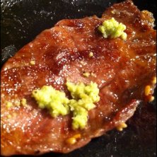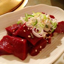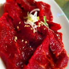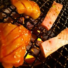 十秒焼きロース!正直、十秒焼いただけだと赤過ぎなんだけど、食感と味は全然生っぽくないです。旨い。刺しが入ってないんだそうです。