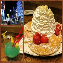うちのママさんは、甘い物屋さんに行かない人です。 で、ずっと行く機会が無かったこちらのお店へ! 大学生になって暇になった娘が『行きたい』と言うので、行くことが出来ました!\(^o^)/ 銀座は行列してません。 でも、お店に入って皆が来る訳が分かりました! 店に入ると、ハワイのヒルトンと同じ匂いが♪ ココナッツの薫りなんですね~(*^^*) すっかりハワイ気分で、ブルーハワイ頼んじゃいました♪ で、有名なパンケーキもペロリと堪能しましたね~。 で、銀座の夜景もオマケです!(^o^)