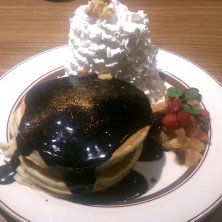 銀座に行ったら食べようと思ってたフレンチトーストが17時までだったという痛恨のミス(>_<) なのでお向かいのお店に移動してパンケーキ(^ν^) 今月いっぱいのチョコレートパンケーキ♪ チョコレート味も美味しかったけど、やっぱり普通が良かったかな〜