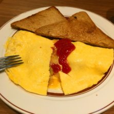 卵料理が美味しいエッグスンシングスなので、オムレツを頼んでみました。具材はポテト、モッツァレラチーズ、ベーコンです。カットすると、とろーりとチーズとタマゴが溢れ出します。そこにトーストでぬぐいながら食べるのです。 はあ、シアワセ( ˘ө˘ )♬