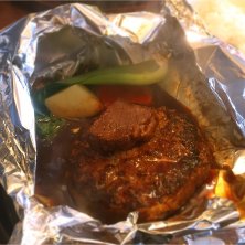 風船ハンバーグヽ(*´ェ`*)ノ ビーフシチューと一緒にホイル焼き❣️ ハンバーグの上のお肉までもが最高でございました✨