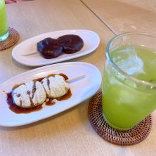 ランチに付いてくるでんがく餅はごま、あんこ、しょうゆ、黒蜜きなこから選べます。