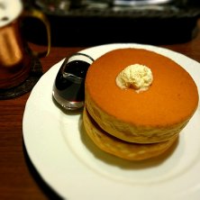 星乃珈琲店の釜焼きスフレパンケーキ。先日行った時のものを上げました。一番に驚くのは何と言ってもその分厚さです。中までしっかり火も通っていて、生地はほんのりと甘く、バター蜂蜜無しで食べても絶品でした。