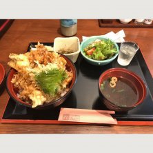 今日は暑くなる前に仕事を終了するために、五時から現場に 予定通り10時半には無事に終了。 自宅に帰る途中でテレビから天丼の放送が すると どうしても天丼が食べたくなり 自宅も通り過ぎ あげどん よしさんへ! スペシャル天丼とあかしゃエビの揚げ物。 揚げ物はさすがに ビールが欲しくなったけども 今日は車だから 我慢 天丼はかき揚げと穴子 ナス 大葉 カボチャ 今度はメジロ天丼が良いかな? 運転手付きで!