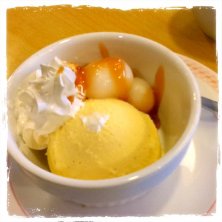 ジョイフルの白玉キャラメル 卒業式あとの二次会入ったカラオケ屋の待ち時間を利用している。 まぁ、このくらいの量じゃ二時間も持たないよね~。