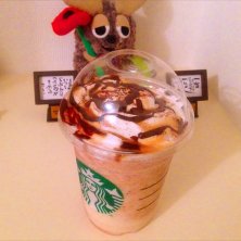 【コーヒーフラペチーノ・グランデ】 *addホイップ *exホイップ *ノンファットミルク *addココアパウダー お散歩なう! ヤバイ!水分補給せな!((((;゚Д゚))))))) っちゅうことで、ひと休みぃ〜♪(⌒▽,⌒)
