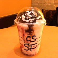 ストロベリークリームフラペチーノwithチョコソース♡♡ チョコチップ入りもおいしい(*´﹃`*) 最近、スタバに週2で通ってます。。 カードにチャージせねば!(*`・з・´) 水曜日からの新メニューも楽しみー❀.(*´▽`*)❀.