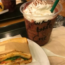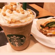 クラッシックティークリームフラペチーノ♡クラブハウスサンドイッチ⭐️おいしっ(*´˘`*)♥