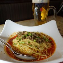 日曜日の続き 二軒目は謝朋酒樓の汁なし坦々麺と揚げUFO もちろんビールも😆 汁なし坦々麺、山椒と胡麻がきいてて美味しかった♪ 揚げUFOは彼のお気に入りになったみたい(*´∀`) 美味しかったー!