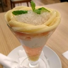 白桃パフェ ¥1,280 ホントは白桃パフェが食べたかったの…と呟いたら、店員さんが、お時間頂きますがお作りしますよって……えええ! あかん、食べすぎやん! と思ったけど……思ったけどー! ( ゚Д゚)ウマー 桃のかき氷と桃ゼリー、吉備団子やシガービスケット、桃のコンフィチュールまで盛り沢山の、美味しいパフェでしたー! 今日の白桃は、夢白桃という種類だそうです。 走ってカロリー消費しなきゃ(笑)!