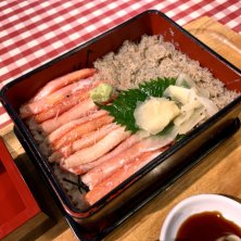 東京グルメ探訪!中央区、銀座編 季節、数量限定!ずわい蟹たっぷり重ランチ! 鳥取・岡山県アンテナショップ贅沢レストラン! 人気名店「ももてなし家」初訪問! 迷わず、数量限定、特製紅ずわい蟹重オーダー! お盆には、サラダとスープ、振舞い酒が乗って! 先ず蟹脚身を口に運べばフワッと広がる蟹風味! ずわい蟹の甘味旨味が口一杯に広がりめちゃ旨! ほぐし身は蟹味噌と絡めて炒めたオリジナル味! 口に運べば蟹味噌の味とほぐし身絡みめちゃ旨! 箸が止まらない蟹三昧な至福な抜群美味な逸品!