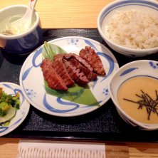 昨晩は牛たんが食べたくなって、横浜駅のねぎし。友人お勧めの厚切り、しろたんセット1530円。厚切り6枚(だっけな)にとろろと麦めし。麦めしはおかわり自由。チョレギサラダもセットで頼んで390円。さらに生をジョッキで頂きました。写真の撮り方は微妙ですが(笑)、美味しゅうございました♫
