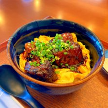 練習合間に夫とランチ。 グランド近くに見つけた穴場の沖縄料理屋さん。 お店に入るとすぐにサーターアンダギーとさんぴん茶がサービスで運ばれてきます♪ 夫は八重山そば、私はゴーヤチャンプルー定食を。 アオサのお吸い物も美味!