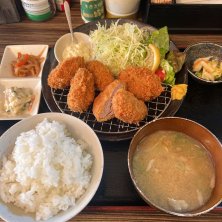 カキフライとメンチカツの日替わり定食…😋😋😋