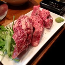 三軒茶屋のかんてきさんで夕食です。 おすすめ三種盛を塩とタレ、レバー2人前、タン一本焼きは写真撮り忘れました。 カルビ1本焼きです。