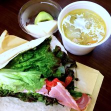茅場町のフルーツ屋さん、イマノフルーツファクトリー。僕が会社に入る前からこの地にあった老舗で、ビカビカの果物やフルーツサンドなどを売っています。 ここではランチタイムに、野菜たっぷりのラップサンドを売っていて、スープとフルーツが付いて来ます。 昨日のフルーツは、キュウイとラ・フランス!さすがフルーツ屋さん、とても美味しかった! この季節は、あまおうサンドがめちゃくちゃ美味しそうなのですが、ダイエット中につき自粛!でも、この時期だけなので、食べちゃいそうだなあ。
