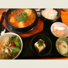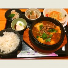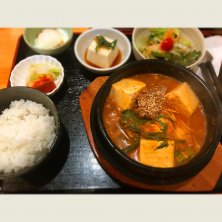 雨だと外食になるランチw 納豆スンドゥブがまた食べたくなりチャグンパンさんへ(^-^) ランチだとご飯や飲み物までついて900円のお得状態です♡ 美味しかった♪ 先日旦那くんと行った時、マフラー忘れてったとちゃんととっておいてくれました♪ 大感謝♡