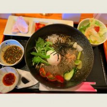 今日は1日雨💦☂️ こんな日はさっぱり冷麺です💕 このお店の冷麺は辛さを自分で調節できるので最高(^ ^) 先週位から食べたかったのですが、店が混んでたり時間が合わなかったりでお預けしてましたw 念願の❣️ 雨だけど大満足なランチでした