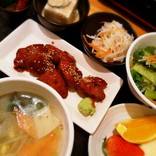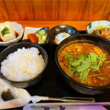 ユッケジャンスープ定食 しっかりした味で美味しい。 副菜があるのは嬉しいな。