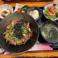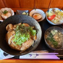 国産豚バラ砂醤酢丼定食…😋😋😋 さしす丼。。。ん? させす 丼?🤔 まぁ いいか…