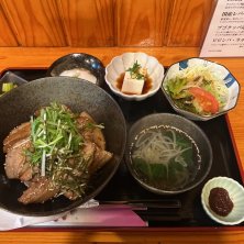 国産豚バラ砂醤酢丼定食…😋😋😋