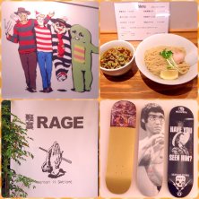 軍鶏そばとチャーシューご飯 無化調、数種類の軍鶏と金華ハムからとった出汁に生醤油の風味が効いてんまい!! 前の職場の近くにあったrock 'n' roll one を思い出すお味〜。 ご飯にのったチャーシューは半生で脂が甘い! こんだけ手が込んでるのにフツーのラーメン屋さん価格なのも素晴らしい! お店にスケボーのデッキが飾ってあったり、BGMがレゲエだったりのちょい前の裏原系世代好みな感じも入りやすくて良いのです^^ 店名レイジだけど流石にヘヴィロックは流れて無かった。むしろかけてw