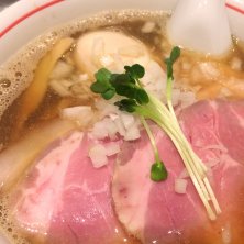 特製煮干しそば チャーシューが2種、かなりなレア感です 濃厚煮干し、すごいです。 麺もコシがあって絡むなぁ 旦那は軍鶏そば。これもスープがスッキリ、ごくごくイケる! また行こうっと!