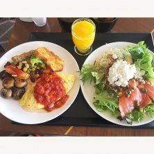 ホテルブレックファースト!名古屋(豊田)でしか開催しない奈良美智展を観に名古屋に行きました。名古屋駅からすぐのマリオットは本当に便利!ホテルで朝食はいつも山盛りサラダにサーモン。あとはオムレツがあれば大満足なの❤️