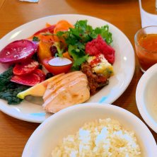 心友会でビュッフェ いつものお店♡ 今日は天気が良くて駿河湾もお山もよく見えました! (富士山は不在😭) 見た事ないお野菜があるし、とにかく新鮮で美味しいのでついつい野菜をたくさん食べてしまう 揚げ物とかもあるんだけど、鶏ハムとかも置いてくれてあるので本当にありがたい