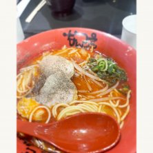神奈川帰省途中海老名PAで夕飯、マー油ラーメン🍜 辛くて美味しかった😋