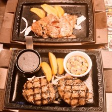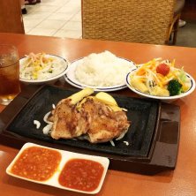 皆様、こんばんは🌙🌃 本日は、川越遠征にお付き合いありがとうございましたΣd(ゝ∀・)ァリガトォ♪ この暑さの中、16000歩、歩いてしまったので、本日の夕餉は、外食です(o´Д`)=зフゥ… チキンステーキ💖 ガーリックソース&サルサソース💖 サラダバー💖 ドリンクバー💖 で~す🙌💓 明日も、異常な暑さは、続くみたいです(+。+)アチャー 皆様、お身体、ご自愛下さいませネ👍🏻💕