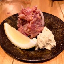 #東京グルメ探訪! #中野区 #中野編 #今回の目的地 #ふれあいロード沿いに #ガラス張りの小洒落たカフェバー風な店構え #話が盛り上がり #先ずは第1弾企画プチオフ会 #名物 #鮪一匹分の中落ち剥がし放題食べ放題! #鮪料理あれこれ #予約の取りづらい人気名店 #鮪専門店 #「マグロマート」#初訪問! #うめほね梅水晶と中落ちトロ食感良し抜群旨!
