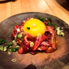 #東京グルメ探訪! #中野区 #中野編 #今回の目的地 #ふれあいロード沿いに #ガラス張りの小洒落たカフェバー風な店構え #名物 #鮪一匹分の中落ち剥がし放題食べ放題! #鮪料理あれこれ #予約の取りづらい人気名店 #鮪専門店 #「マグロマート」#初訪問! #マグロユッケ鮪赤身と卵黄身と絡まり抜群旨!