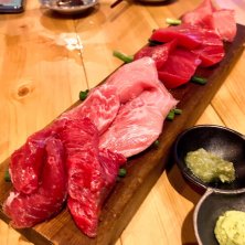#東京グルメ探訪! #中野区 #中野編 #ガラス張りの小洒落たカフェバー風な店構え #名物 #鮪一匹分の中落ち剥がし放題食べ放題! #鮪料理あれこれ #予約の取りづらい人気名店 #鮪専門店 #「マグロマート」#初訪問! #マグロマート盛り #鮪赤身 #中トロ #脳天 #ほほ #かまとろ #のどうら #希少部位合わせて #6種類 #山葵は2種類 #本山葵 #ちょっと辛い粗挽き山葵 #お好みで胡麻油塩 #更にトリュフかけ絡め食す #どれも新鮮大切れそれぞれ食感良しめちゃ旨!