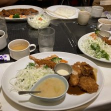 2021.6.4 昼 タウン誌で見たらしいお店へ。あいのりセットCランチ(特大エビフライ、目玉焼き、ハンバーグ)とステーキランチ。ステーキは二切れ私のお皿に移動してきた。 時間がなくなったので、セブンでコーヒーとミニシューを買って帰る。 ミニシューは夕方に。