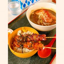 #室蘭 で昼ごはん #小舟 ミニミニセットで、 *室蘭カレーラーメン *室蘭やきとり ご当地グルメをまとめて味わえるのはお得 どろどろのカレースープは濃厚😆 辛みスパイスも後から効いてきて、 寒い時期にはピッタリだ✨ 豚肉をつかった室蘭やきとりも、 しっかりタレでご飯がすすむ。 夜は居酒屋になるらしく、 これでお酒が飲めたら楽しいだろうなぁ🍺 #室蘭ランチ #室蘭グルメ #昼ごはん #ご当地グルメ #室蘭カレーラーメン #室蘭やきとり #室蘭居酒屋